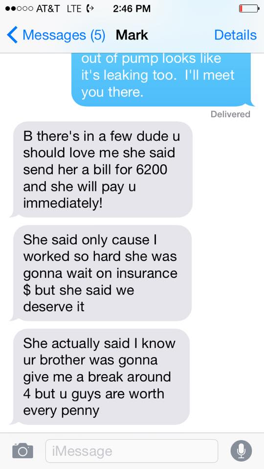 I love when you help someone out. She got a quote for 4g to Repipe her home and told me who. I said I’d just do it for that price cause I know the guys. My price was 6,200$. The guy has dementia and makes the calls. I didn’t want them to take advantage cause that price was not right. I did it out of the good of my heart so it’d be done right. Didn’t want too but I believe in karma. When we got all done this is what she told my brother. This is what happens when you treat people right and don’t always worry about the bottom line. Made my day. Once we got started it was twice as hard as first thought. Even if I broke even at least I helped an older couple. Karma!! ![]()